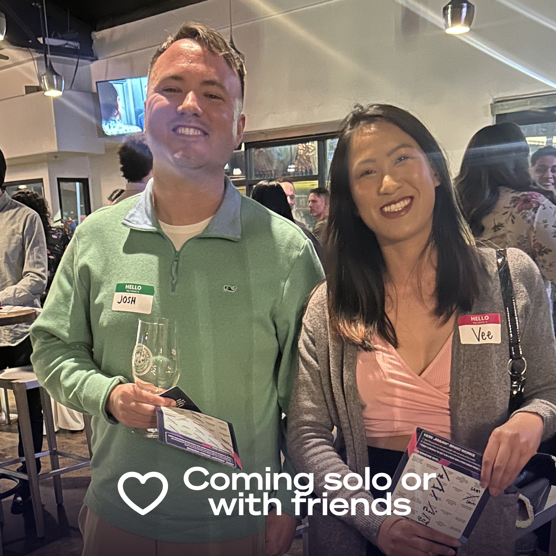 Your friendly Jigsaw Dating host will greet you, scan your QR code, and give you your event materials.